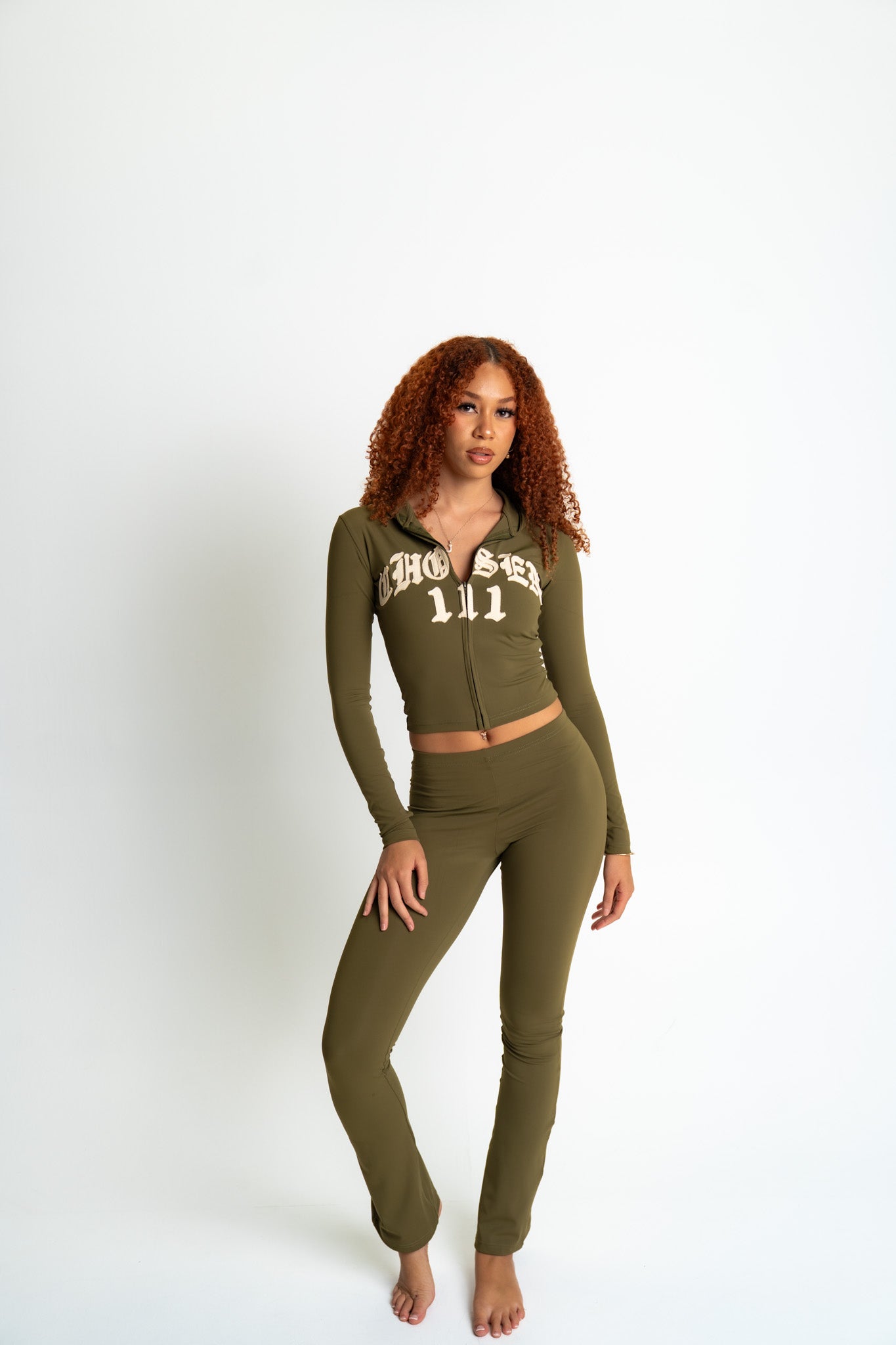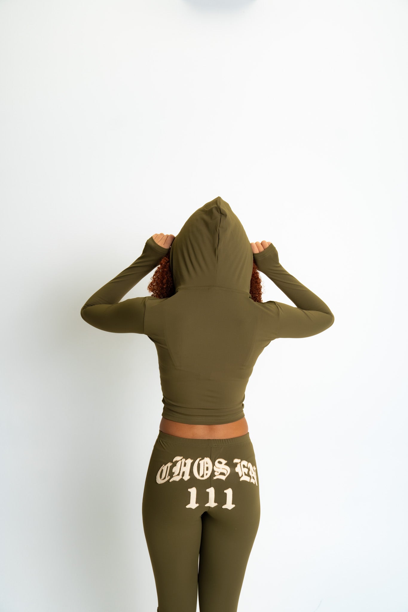 Get cute and comfy in our CHOSEN 111 zip-up hoodie! This form fitting top is designed to accentuate the female figure without compromising comfortability. Pair with our matching leggings to complete the look!